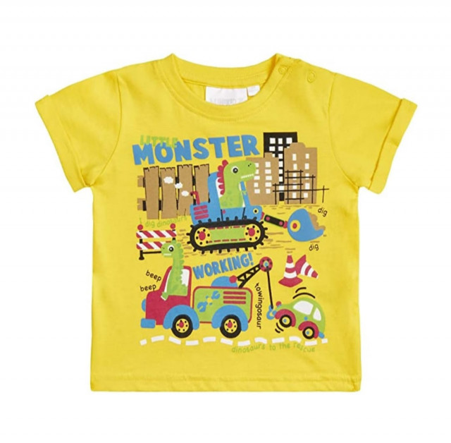 Tricou galben pentru baietei, imprimat cu desene vesele si viu colorate.