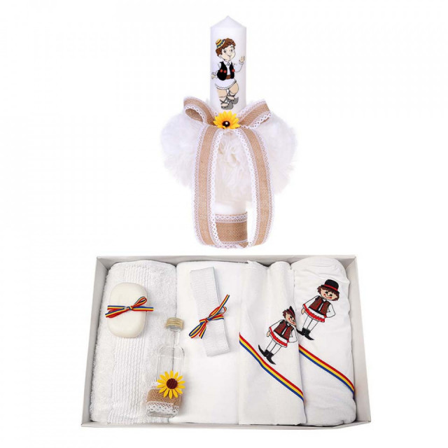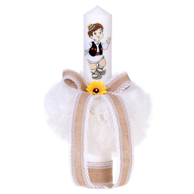 Trusou botez baietel brodat si lumanare, decor rustic, denikos® 121