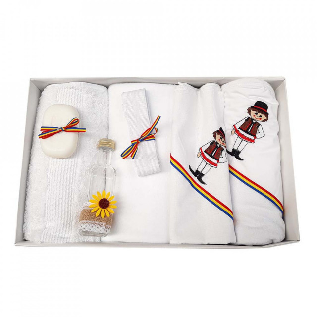 Set special creat pentru ceremonia de botez a unui baietel. Setul este alcatuit din trusou complet ambalat intr-o cutie dreptunghiulara si o lumanare decorata cu elemente rustice.
