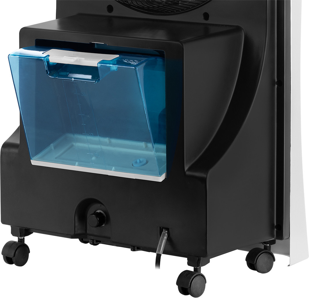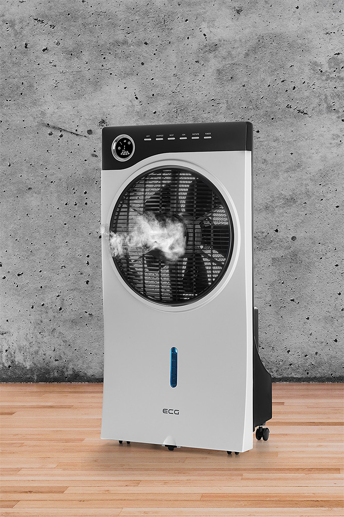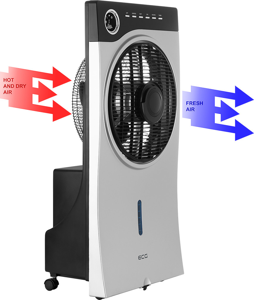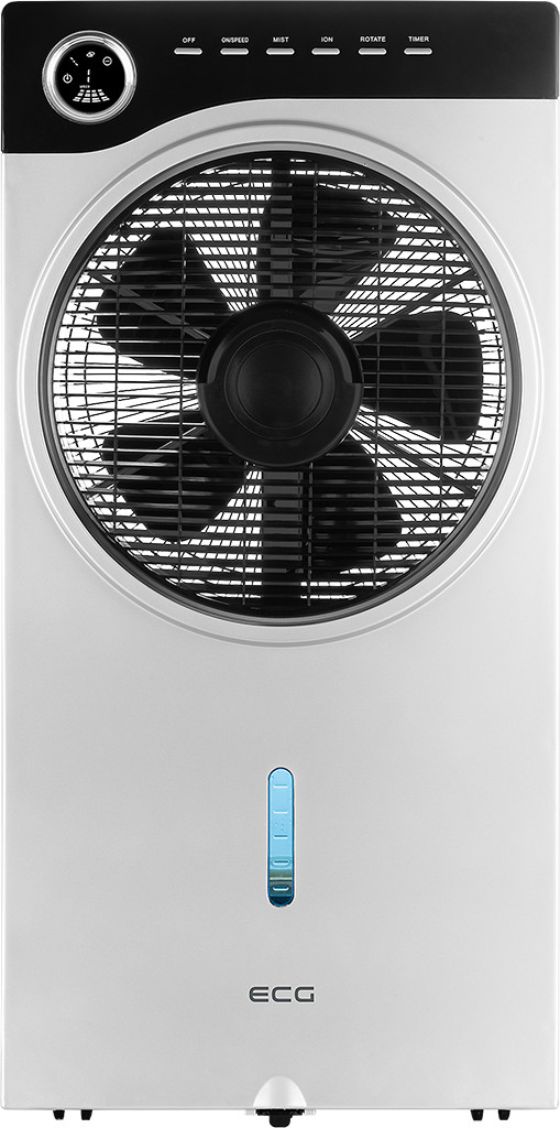 Putere de intrare de 90 W 3 in 1: ventilator, umidificator prin pulverizare apa si ionizator Ventilatorul si pulverizarea de apa functioneaza in mod independent Volumul rezervorului de apa 2,5 l 3 viteze ale ventilatorului: mica, medie, mare Circulatie a aerului la 180° Diametrul elicei 28,5 cm Temporizator pana la 9 ore Afisaj LED Telecomanda Avertizare in caz de lipsa a apei in rezervor 4 roti duble pentru manevrare usoara Pentru o atmosfera mai placuta in casa ECG Mr.Fan este un aparat elegant ce ofera 3 functii. Toate au acelasi scop comun - de a face camera dvs. de zi, dormitorul sau biroul mai confortabil. Folositi acest ventilator pentru a dispersa aerul cald sa va racoriti. Daca aerul din interior este uscat, veti aprecia optiunea de a pulveriza stropi foarte fini de apa pentru a umidifica aerul . In plus, functia de ionizare serveste ca purificator de aer si va scapa camera de particulele nocive, polen si fum de tigara. Cu un design modern si foarte elegant acesta decoreaza frumos orice camera. Manevrarea usoara este asigurata de 4 roti duble . Ventileaza si umidifica aerul Ventilarea si pulverizarea sunt comenzi independente dar pot fi folosite impreuna. Aparatul se poate utiliza ca un simplu ventilator sau ca ventilator cu umidificare prin pulverizare a particulelor de apa. Dispozitivul are un rezervor de 2,5 litri si va alerteaza in caz de lipsa a apei. Aparatul asigura o circulatie a aerului la 180° , are o elice cu diametrul de 28,5 cm si ofera 3 viteze de ventilare . Respiratie mai buna datorita ionizarii Bucurati-va de aer proaspat pentru o respiratie mai buna. Prin functia de ionizare aerul este imbogatit cu ioni negativi care interactioneaza cu particulele nocive aflate in mediu si le neutralizeaza. Are loc astfel o purificare eficienta a aerului. Scapati de bacterii, virusi, polen sau mirosuri neplacute . In plus, ionii negativi generati de ventilatorul nostru au un efect pozitiv asupra sanatatii. Acestia influenteaza benefic functiile metabolice, reduc factorii/riscurile alergene si durerile de cap, reduc oboseala si stresul astfel ca va veti simti revigorat. Simplu si usor de utilizat Ventilatorul portabil ECG Mr. Fan este foarte usor de utilizat. Dispozitivul este echipat cu un afisaj LED clar si o telecomanda foarte practica. Pentru toate cele trei functii oferite de dispozitiv, puteti utiliza cronometrul care asigura oprirea automata dupa un timp selectat de dumneavoastra (pana la 9 ore).