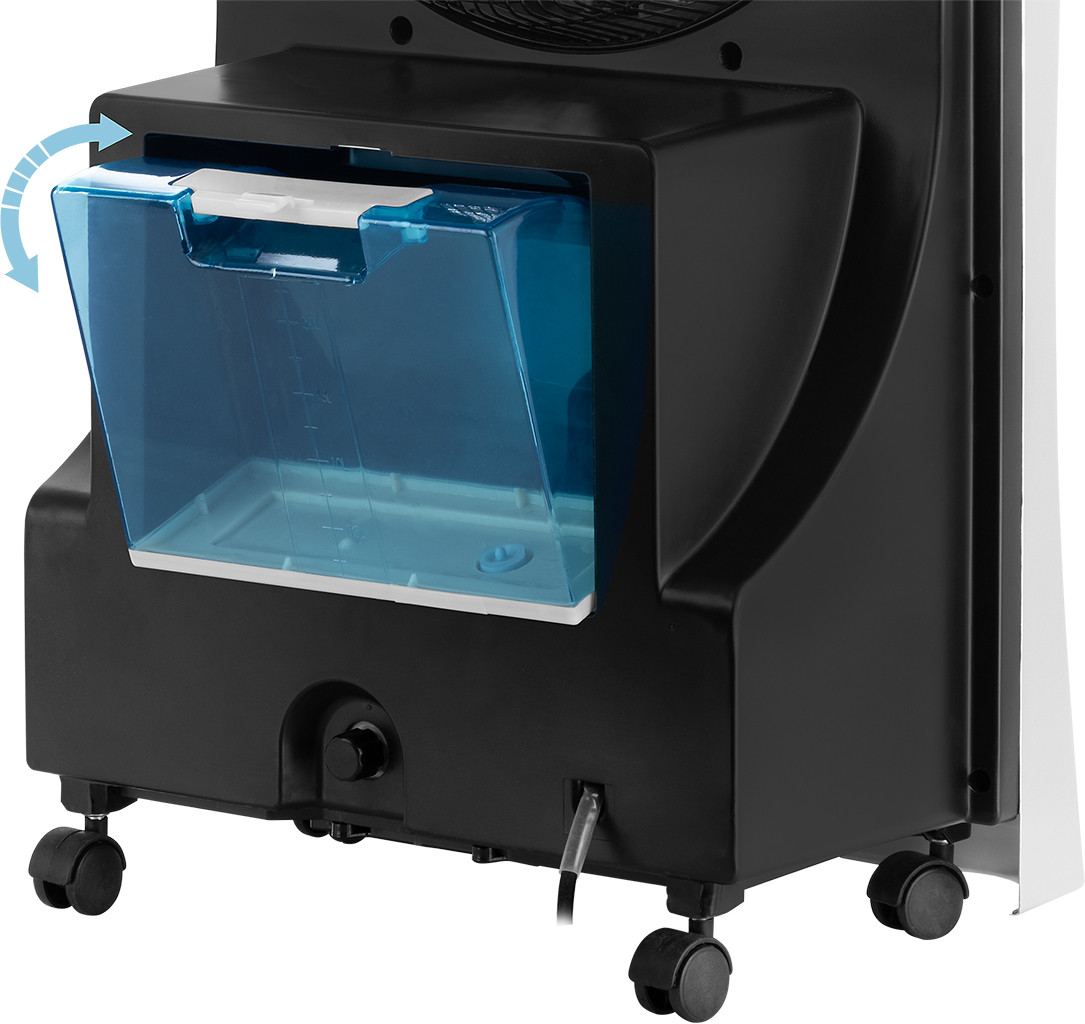 Putere de intrare de 90 W 3 in 1: ventilator, umidificator prin pulverizare apa si ionizator Ventilatorul si pulverizarea de apa functioneaza in mod independent Volumul rezervorului de apa 2,5 l 3 viteze ale ventilatorului: mica, medie, mare Circulatie a aerului la 180° Diametrul elicei 28,5 cm Temporizator pana la 9 ore Afisaj LED Telecomanda Avertizare in caz de lipsa a apei in rezervor 4 roti duble pentru manevrare usoara Pentru o atmosfera mai placuta in casa ECG Mr.Fan este un aparat elegant ce ofera 3 functii. Toate au acelasi scop comun - de a face camera dvs. de zi, dormitorul sau biroul mai confortabil. Folositi acest ventilator pentru a dispersa aerul cald sa va racoriti. Daca aerul din interior este uscat, veti aprecia optiunea de a pulveriza stropi foarte fini de apa pentru a umidifica aerul . In plus, functia de ionizare serveste ca purificator de aer si va scapa camera de particulele nocive, polen si fum de tigara. Cu un design modern si foarte elegant acesta decoreaza frumos orice camera. Manevrarea usoara este asigurata de 4 roti duble . Ventileaza si umidifica aerul Ventilarea si pulverizarea sunt comenzi independente dar pot fi folosite impreuna. Aparatul se poate utiliza ca un simplu ventilator sau ca ventilator cu umidificare prin pulverizare a particulelor de apa. Dispozitivul are un rezervor de 2,5 litri si va alerteaza in caz de lipsa a apei. Aparatul asigura o circulatie a aerului la 180° , are o elice cu diametrul de 28,5 cm si ofera 3 viteze de ventilare . Respiratie mai buna datorita ionizarii Bucurati-va de aer proaspat pentru o respiratie mai buna. Prin functia de ionizare aerul este imbogatit cu ioni negativi care interactioneaza cu particulele nocive aflate in mediu si le neutralizeaza. Are loc astfel o purificare eficienta a aerului. Scapati de bacterii, virusi, polen sau mirosuri neplacute . In plus, ionii negativi generati de ventilatorul nostru au un efect pozitiv asupra sanatatii. Acestia influenteaza benefic functiile metabolice, reduc factorii/riscurile alergene si durerile de cap, reduc oboseala si stresul astfel ca va veti simti revigorat. Simplu si usor de utilizat Ventilatorul portabil ECG Mr. Fan este foarte usor de utilizat. Dispozitivul este echipat cu un afisaj LED clar si o telecomanda foarte practica. Pentru toate cele trei functii oferite de dispozitiv, puteti utiliza cronometrul care asigura oprirea automata dupa un timp selectat de dumneavoastra (pana la 9 ore).Descriere produs